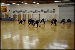 It is the intention of this section to answer many of the most common questions that people may have when they visit a Dojo for the first time. If some of your questions have not been answered here, please feel free to call us or visit us at the Dojo, we will be happy to answer them. What are the traditional Japanese/Okinawan martial arts? Ancient self-defense systems where the practitioners learn to live their lives under a code of discipline, honor, and respect for themselves and others. What is a Dojo? The western common interpretation referes to Dojo as the martial art school or building. The traditional Japanese martial art concept translates the kanji or Japanese character Do as 'the way, the path', and Jo as 'the place', for what the deeper meaning is known as the 'place where we find our way', 'the place where we forge our character'. What does Bushikan Dojo means? The word Bushikan is composed by the kanji Bushi that represent 'Bushido or way of the Samurai, the way of the Japanese/Okinawan martial arts'. Also, Bushi represents an honorific title that only few had obtained in the martial arts, few as Chojun Miyagi Sensei, founder of Okinawan Goju Ryu Karate. Kan interpretes as 'the house, the building', for what Bushikan is translated as the 'the house of Bushido, the house of the martial arts'. What M.A. are taught at the Bushikan Dojo? The arts taught at the Bushikan Dojo are Japanese/Okinawan. We teach Karate, Kobudo, and Self-Defense. Karate: Okinawan empty hand system. The style taught at the Bushikan Dojo is Okinawan Goju Ryu, one of the first two main karate schools born in Okinawa. Goju Ryu at the Bushikan Dojo has preserved the meaning of a traditional art and not as a modern flashy fighting system. Kobudo: ancient Okinawan system based on the use of agricultural and fishing tools as weapons. The style taught at the Bushikan Dojo is the Matayoshi Kobudo system. Matayoshi Kobudo is one of the oldest schools born in Okinawa, and as in Goju Ryu Karate, has influenced many other traditional styles spread around the world nowadays. Self-Defense: practical system that permits children and adults to apply simple and useful techniques to soft spots of an assailant when the need arises. Does every Dojo offer the same as the Bushikan Dojo? No, the education obtained at the Bushikan Dojo is very different compared with most Dojos because Sanguinetti Sensei's unique vision, training, experience, and exposure acquired during his career living in different countries, including Okinawa, the birth place of Karate and Kobudo. Sanguinetti Sensei's teaching is not directed toward obtaining fast belts or medals and trophies to keep the students happy at the Dojo. His teaching is focused on exposing practitioners to the true martial arts where each student earns his/her own position at the Dojo because his/her hard work, dedication, discipline, and loyalty. He motivates everyone to do their best to be able to become the best that they can be. What do we learn at the Bushikan Dojo? Members of the Bushikan Dojo are taught equally the importance of the physical aspect of the martial art or self-defense techniques as well as the philosophical part of the arts. Practitioners, in addition to the waza (techniques) will also learn the basics of Nihon go (Japanese language), rekishi (history of the martial arts), reigi (proper etiquette of the martial arts) among many other subjects. Students at the Bushikan Dojo are exposed to concepts rarely seen in the western world, concepts like the zookin gake. Zookin gake (top photo) is a traditional oriental custom where all the students; from white belt to black belt, without distinction of rank, line up one next to the other with a towel in their hands and at unison all push their towels across the Dojo floor cleaning the entire training area. The meaning is far away from being just a cleaning procedure; it is a daily routine to remind the practitioner to maintain a humble heart without egos regardless of their rank or seniority at the Dojo. At the Bushikan Dojo students will be constantly reminded to exercise the concept of respect. With time that respect showed to Sensei (instructors), Senpai (seniors), and Doshi (classmates) during their time at the Bushikan Dojo, will become a natural concept in their lives outside the Dojo, making our students much better citizens. Do I have to practice all the M.A. taught at the Bushikan Dojo? No, practitioners can decide what martial arts they want to practice at the Dojo. Children will be able to join Kobudo only under the approval of Sanguinetti Sensei. Is my son/daughter too young to practice Karate? At the Bushikan Dojo we receive children from 3 years old if they are ready to follow commands and maintain focus in a structured group class. Each child is different and Sanguinetti Sensei will be happy to asses your child to determine if he/she is ready or if it will be necessary to wait a bit longer before he/she begins training. Will my child become aggressive if he/she practices Karate? Many parents are concerned of that possibility mainly because the wrong message and image that 'action films' are portraying nowadays. Sanguinetti Sensei takes his role very seriously as an educator and is very strict in his constant reinforcement to children and adults to never misuse or play with the self-defense techniques learned at the Bushikan Dojo. Parents and teachers of the children at their schools are able to notice their behavior in this manner soon after they begin their training. As an adult, am I too old to begin practicing the M.A.? Age should not be an issue to stop anyone from starting to practice the martial arts. Sanguinetti Sensei not only encourages adults to obtain the benefits of the practice, but also he tailors the classes for them to be able to have a progressive and smooth transition at the beginning. I have a physical limitation, can I practice the M.A.? Unless it is a severe limitation, it should not